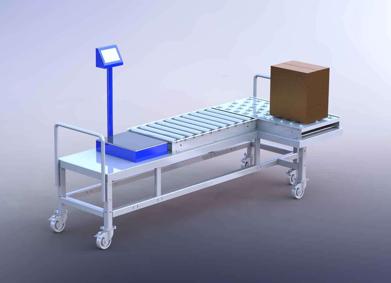 CAD von Wägetisch mit Rollband und Waage, zum Befüllen und wägen von Kartonkisten,